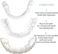 Soak the teeth in hot water, fit gently according to your teeth shape, and enjoy your smile.